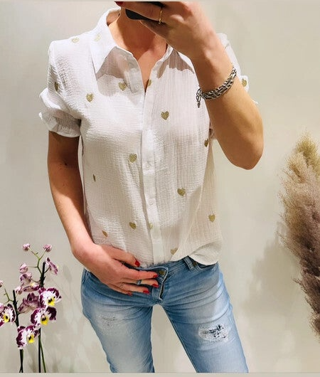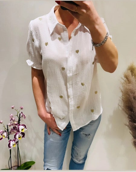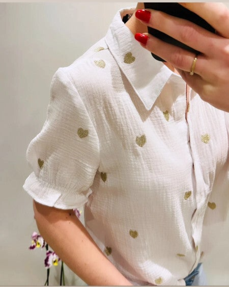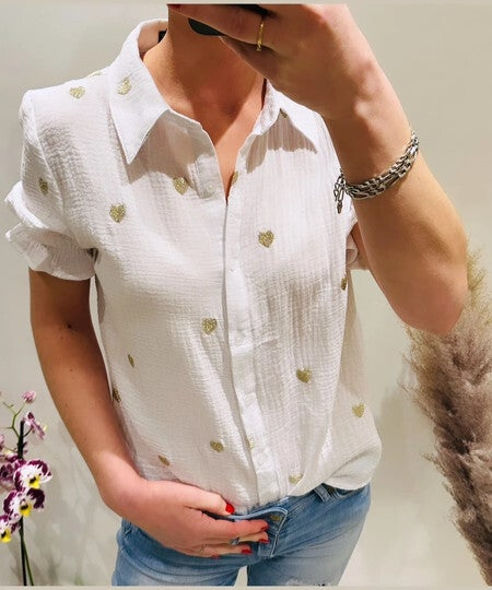 blanc motif coeur doré