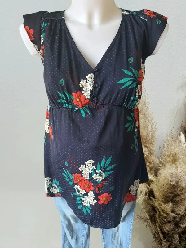 Blouse fluide de grossesse fleurie effet satinée Manche courtes